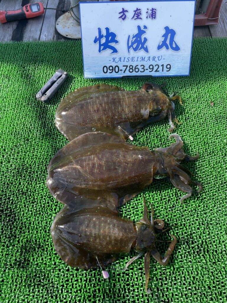 アオリイカ 1030gまで3杯 爆風の中お疲れ様でした😊👍 船釣り ティップランエギング・アオリイカ よかったらシェアしてね! URLをコピーしました! 12月10日筏釣果 関連記事 またまたテスト 2022年8月15日 9月24日タイラバ便 2023年9月24日 ティップランエギング便 2022年10月2日 5月2日タイラバ便 2023年5月2日 10月8日タイラバ便 2023年10月8日 1月22日半夜便 バチコンアジング、イカメタル便 2023年1月23日 11月22日筏釣果 2025年11月22日 11月14日ティップラン便 2025年11月14日